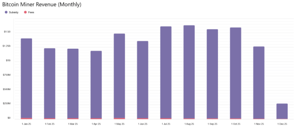 Протягом року дохід майнерів загалом йшов за динамікою ціни біткоїну. Ще з липня частка комісій у сукупному показнику впала до значень менше ніж 1%. Виручка добувачів практично повністю формувалася за рахунок винагороди за здобутий блок. Після халвінгу, що відбувся в квітні 2024 року, воно становить 3,125 BTC — або в середньому 450 BTC на добу.