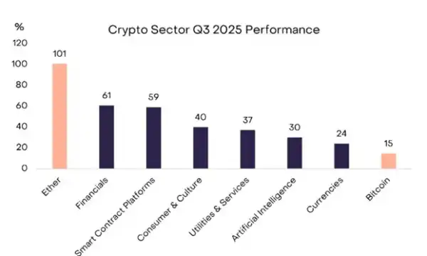 Однак у липні — вересні біткоїн показав результат гірше, ніж стейблкоїни, платформи смарт-контрактів, сервісні токени та криптовалюти окремих блокчейнів.