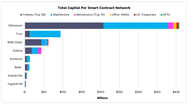 Фахівці ARK Invest очікують збільшення капіталізації платформ смарт-контрактів, DeFi-проектів та ринку токенізації реальних активів. За їхніми словами, блокчейни для смарт-контрактів зростатимуть на 54% щорічно і до 2030 року досягнуть капіталізації $6 трлн — втім, базові криптовалюти блокчейнів на кшталт Ефіріуму або Tron зростатимуть повільніше.