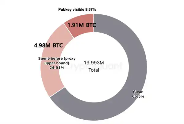 На думку Кі Янг Джу, більшість уразливих біткоїнів зберігається в ризикованих умовах. 1,91 млн. BTC знаходяться на старих адресах формату P2PK, де публічні ключі видно в блокчейні, а ще 4,98 млн. BTC могли розкрити свої публічні ключі через минулі транзакції, заявив творець CryptoQuant.
