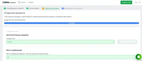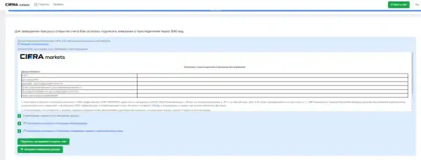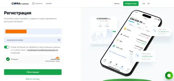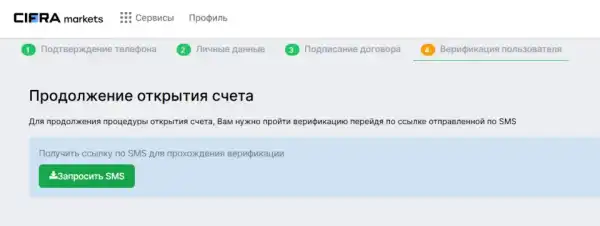 Щоб розпочати роботу з Cifra Markets, потрібно натиснути на кнопку «Відкрити рахунок» на головній сторінці сайту.