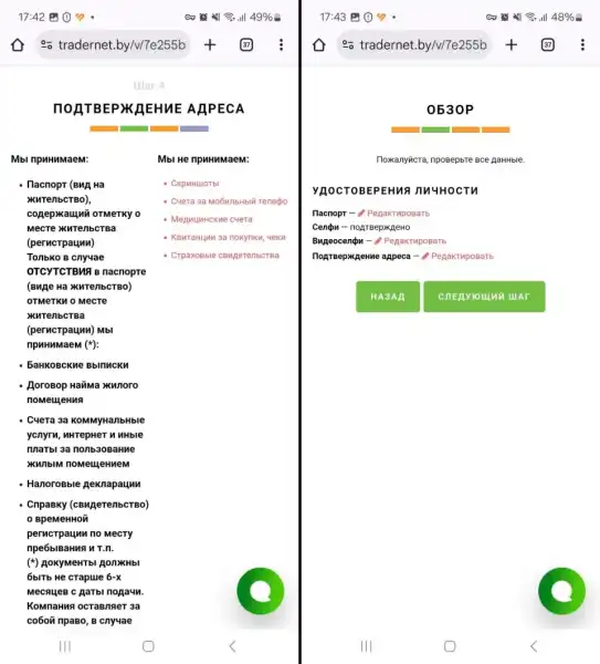 На останньому етапі потрібно підтвердити адресу: надати фотографію прописки з паспорта, банківську виписку або інший документ, вказаний на сторінці. На наступному екрані можна відредагувати надані документи або натиснути «Наступний крок».