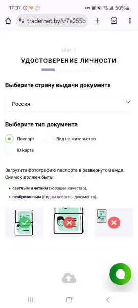 При переході по отриманому лінку відкриється сторінка верифікації. На кроці 1 потрібно вказати країну видачі документа, його тип та завантажити фотографію.