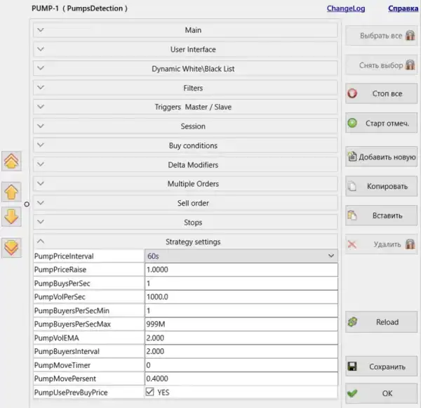 • PumpUsePrevBuyPrice – параметр, що захищає від покупки на вершині за рахунок використання ціни 2- або 30-секундної давності.