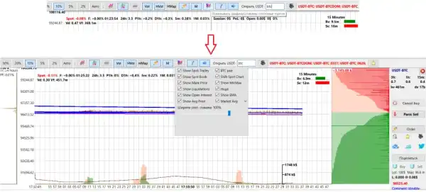 У Moonbot є графічний стакан: він наочно показує баланс покупців та продавців і допомагає швидко знаходити великі скупчення лімітних ордерів (щільності), які особливо важливі для ухвалення торгових рішень. У розділі «ГрафікиСтакани» можна задати точні налаштування графічного відображення склянки, її ширини та інших корисних індикаторів: