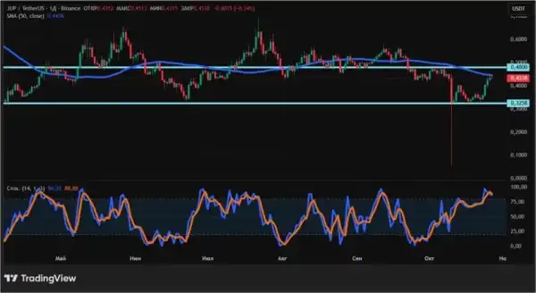 Лише останнім часом (починаючи з 23 жовтня) криптомонета Jupiter перейшла до зростання, зафіксувавши п'ять плюсових сесій поспіль. Її вартість за п'ять днів збільшилась більш як на чверть.