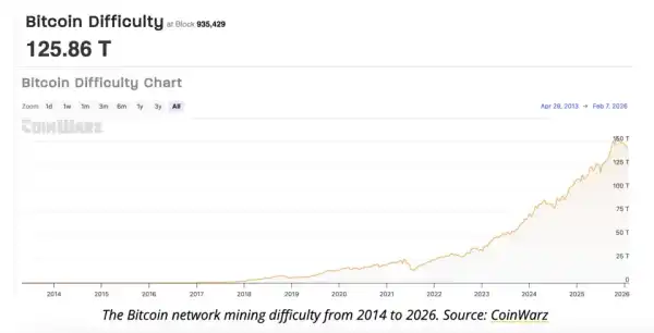 На момент коригування (блок 935429) складність склала 125,86 Т (умовне позначення рівня, еквівалентне трильйона операцій). Середній час виявлення нового блоку досяг 9,47 хвилин, тобто трохи нижче за цільовий показник в 10 хвилин. Наступне коригування, заплановане на 20 лютого, може підвищити складність на 5,63%, до 132,96 Т, випливає із цифр CoinWarz.