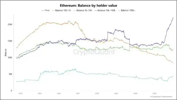 Цікаво, що попри стагнацію ціни великі гравці продовжують скуповувати ефір. Кількість адрес, що містять від 10 000 до 100 000 ETH, з квітня зросла на 60%. Більше того, гаманців з балансом понад 100 000 ETH із серпня побільшало на 50%. А ось адрес, які зберігають до 10000 ETH, навпаки, стає все менше. Зазвичай це передбачає зростання монети, оскільки китам немає сенсу закуповуватися ефіром, якщо вони вважають, що той має дешевшати.
