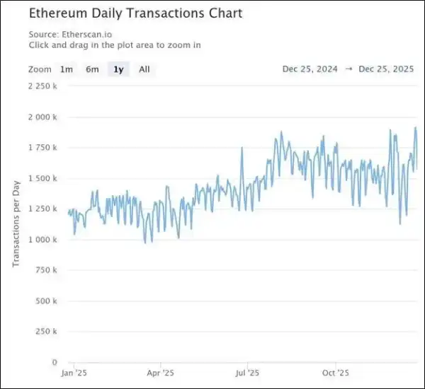 Мережа Ефіріуму 23 грудня встановила рекорд року за кількістю транзакцій за день. Водночас середня комісія виявилася дуже невеликою, $0,16. Таким результатам Ефіріум завдячує своїм двом недавнім хардфоркам, Pectra та Fusaka. Перший збільшив масштабованість, оптимізувавши взаємодію рішень другого рівня (L2) з головною мережею. Другий зробив розмір блоків в Ефіріумі більше майже на третину. Іншими словами, у кожен блок з'явилася можливість додавати більше транзакцій.