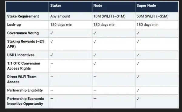 WLFI також оголосила, що користувачі, які блокують токени, отримають додаткові переваги при використанні стейблкоїну USD1. Депозити в USD1 на платформі WLFI Markets зможуть давати стимули від DeFi-протоколу Dolomite, проте їх параметри поки що не розкриваються.