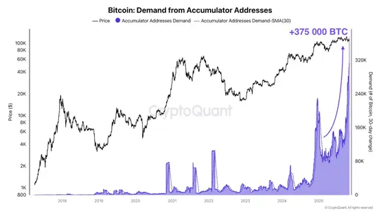 Інвестори на відкритому ринку купили більше 375 000 біткоінов за останній місяць, саме 5 листопада – 50 000 BTC, повідомили експерти ончейн-платформи CryptoQuant.
